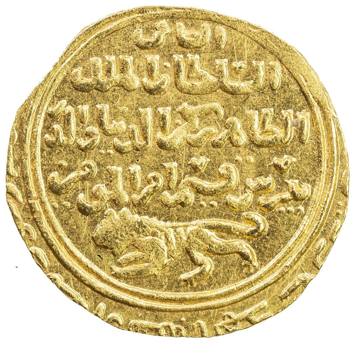 BAHRI MAMLUK: Baybars I, 1260-1277, AV dinar (5.08g), al-Qahira, AH(65)9, A-880, ruler cited as al-sultan al-malik, with the lion below the obverse, citing the Abbasid caliph in Egypt, al-Mustansir (AH 659-661), superb strike, choice EF-AU, R, ex Gamal Amer Collection. Balog 's listing of gold coins of Baybars I is woefully incomplete - hundreds more have appeared in auctions since Balog 's book was published in 1964, and new research is desperately needed to sort out the complex gold coinage of Baybars I.