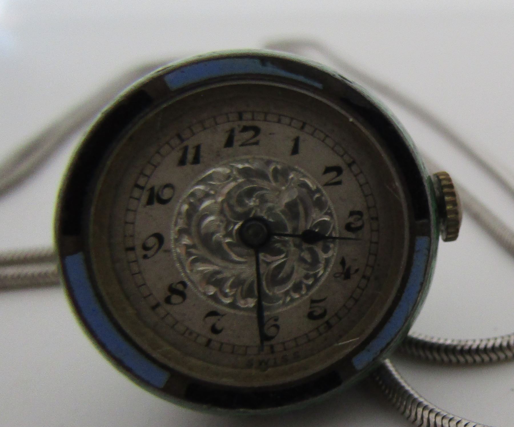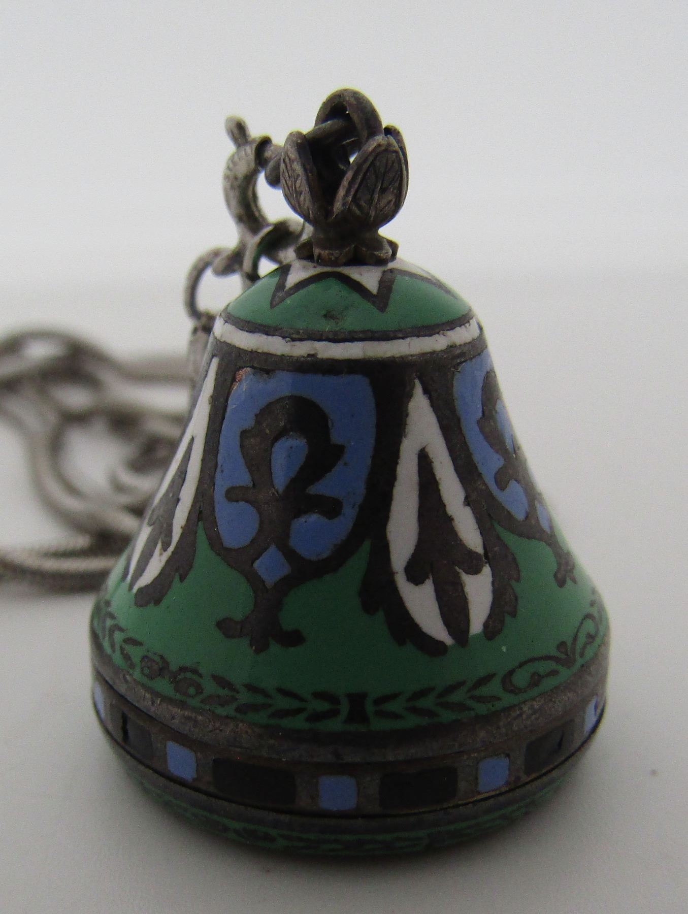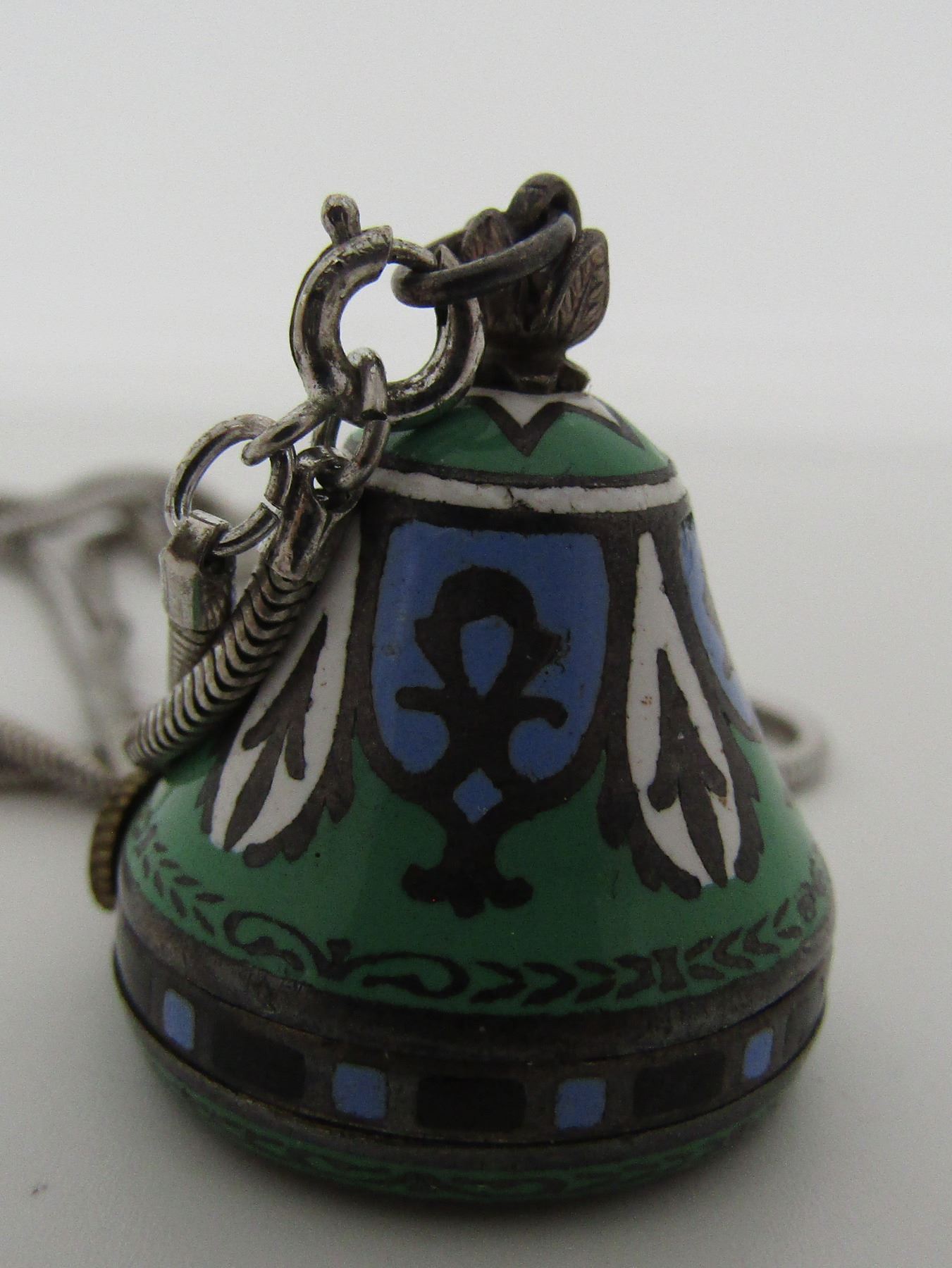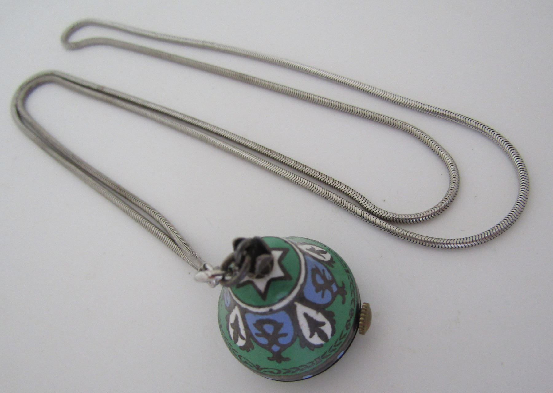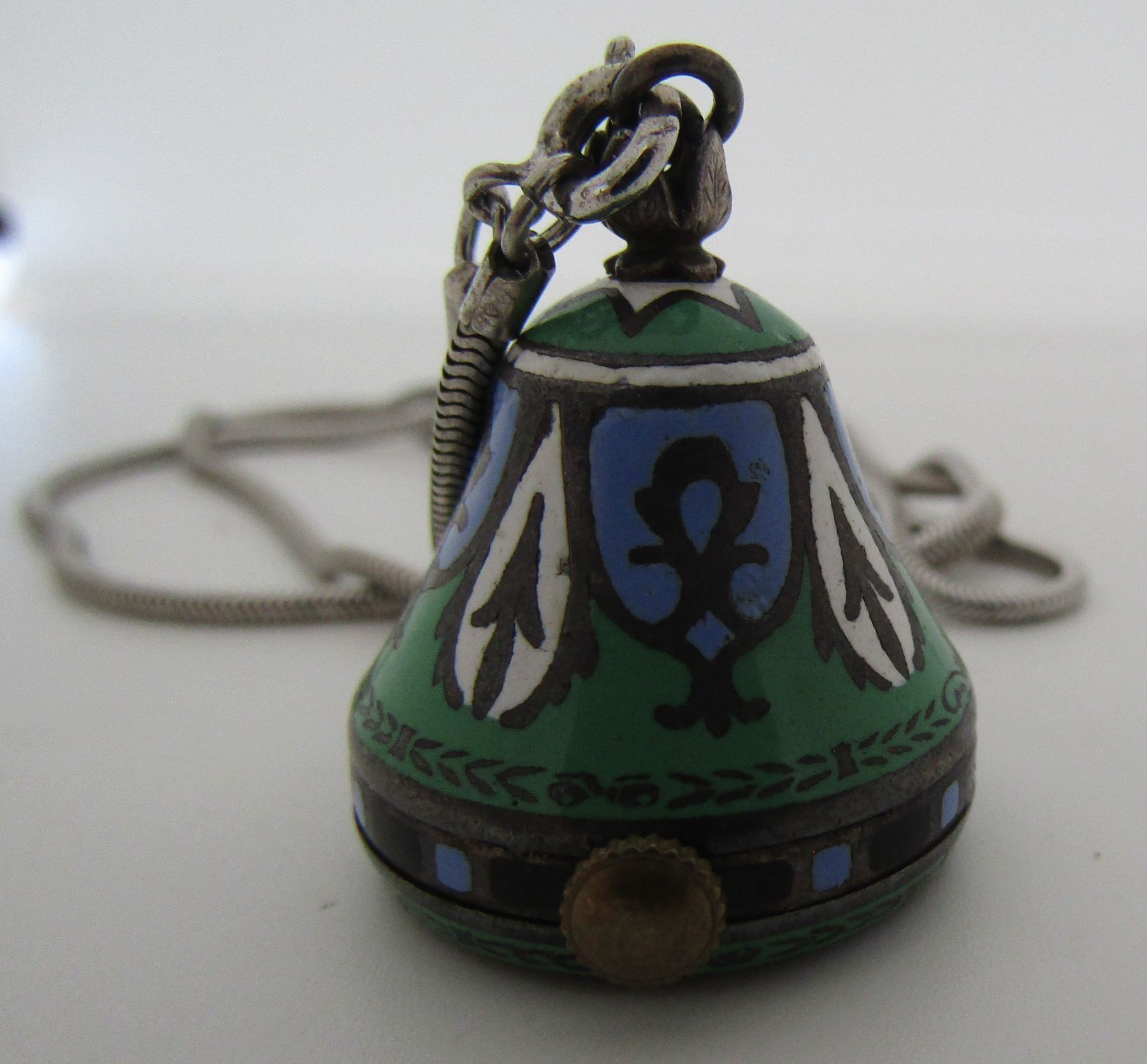 ANTIQUE VINTAGE ESTATE SWISS BELL SHAPED 30 INCH LONG SNAKE CHAIN NECKLACE. MARKED "STERLING". WATCH 22MM X 20MM. WEIGHS 32.9 GRAMS. USA SHIPPING $5.