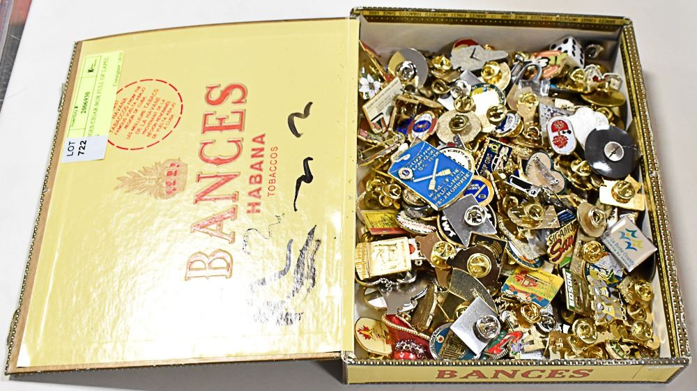 BANGES CIGAR BOX FULL OF LAPEL PINS