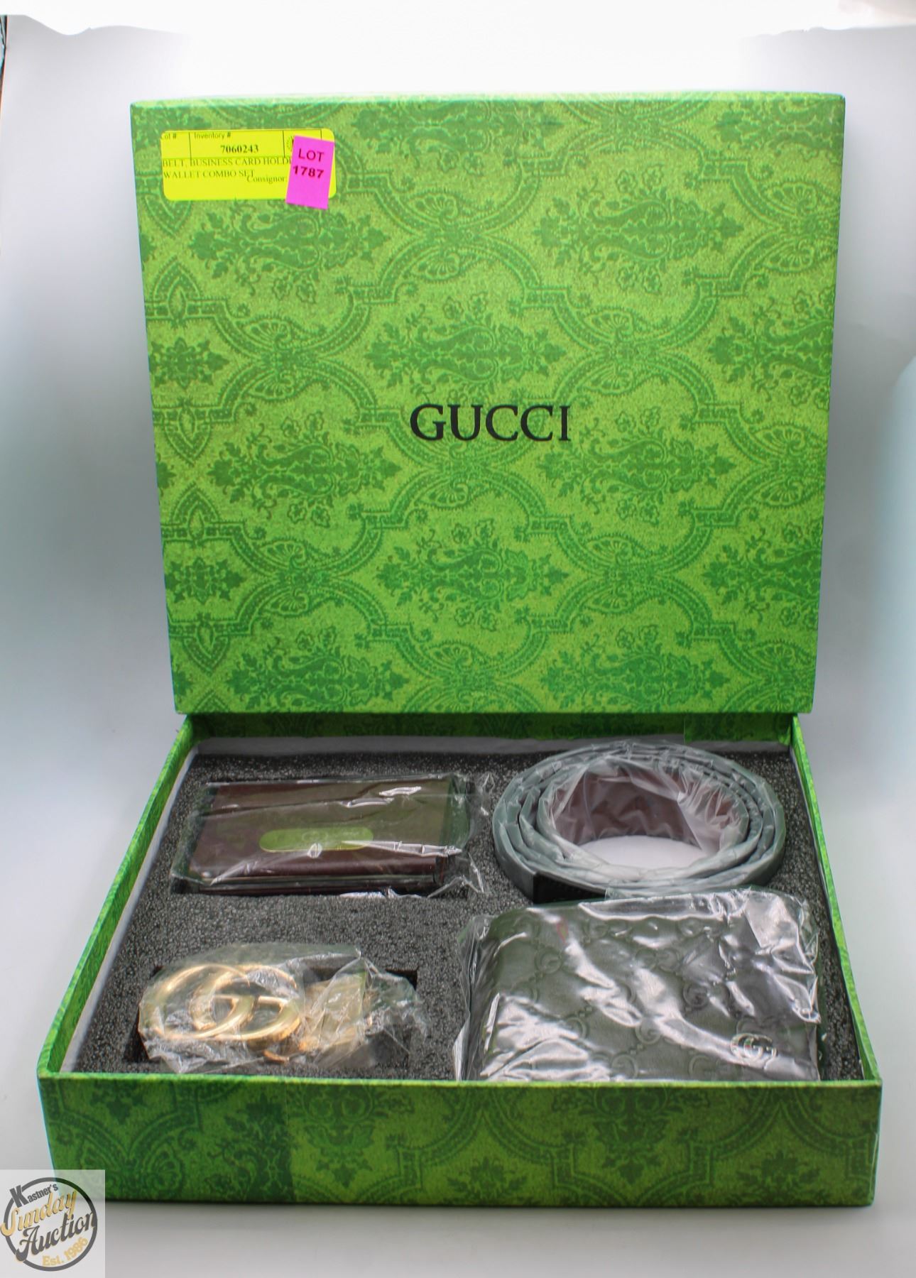 BELT, BUSINESS CARD HOLDER AND WALLET COMBO SET
