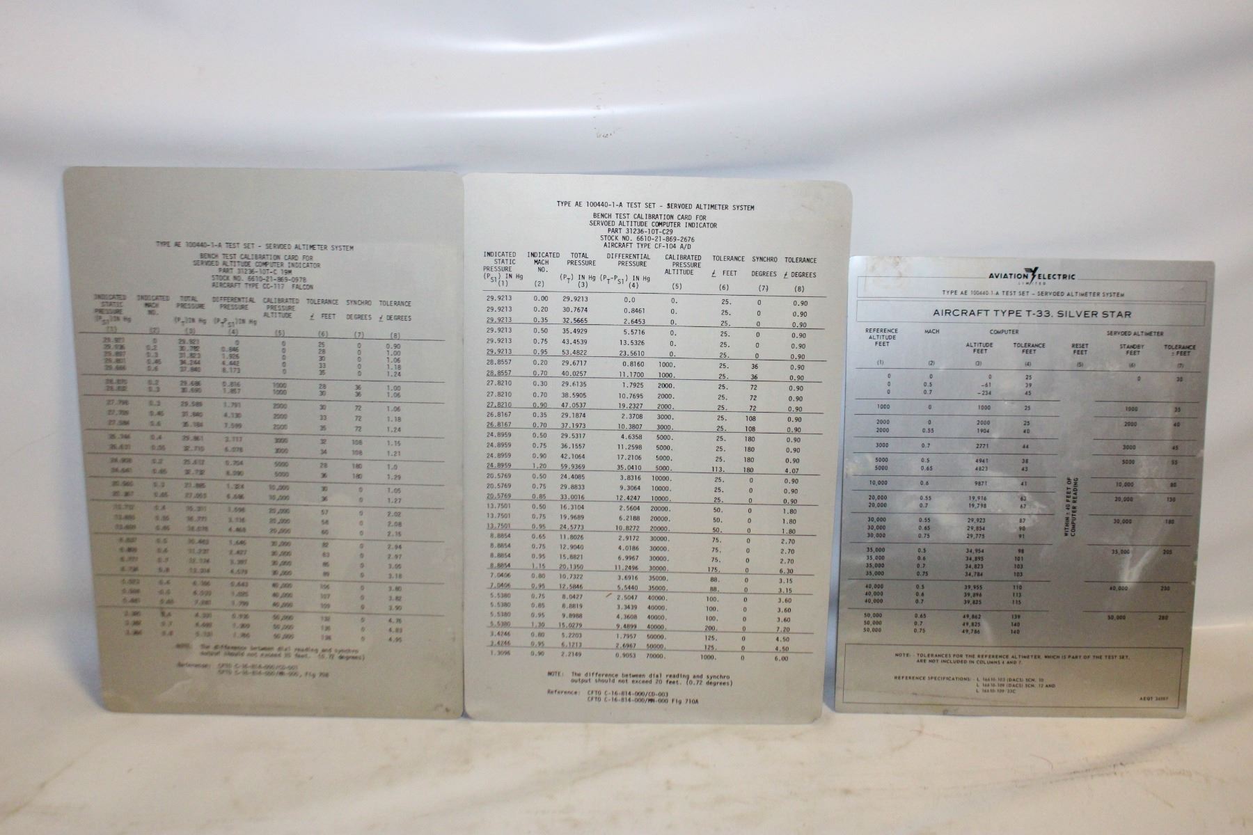 BENCH TEST CALIBRATION CARDS FOR AIRCRAFT VINTAGE