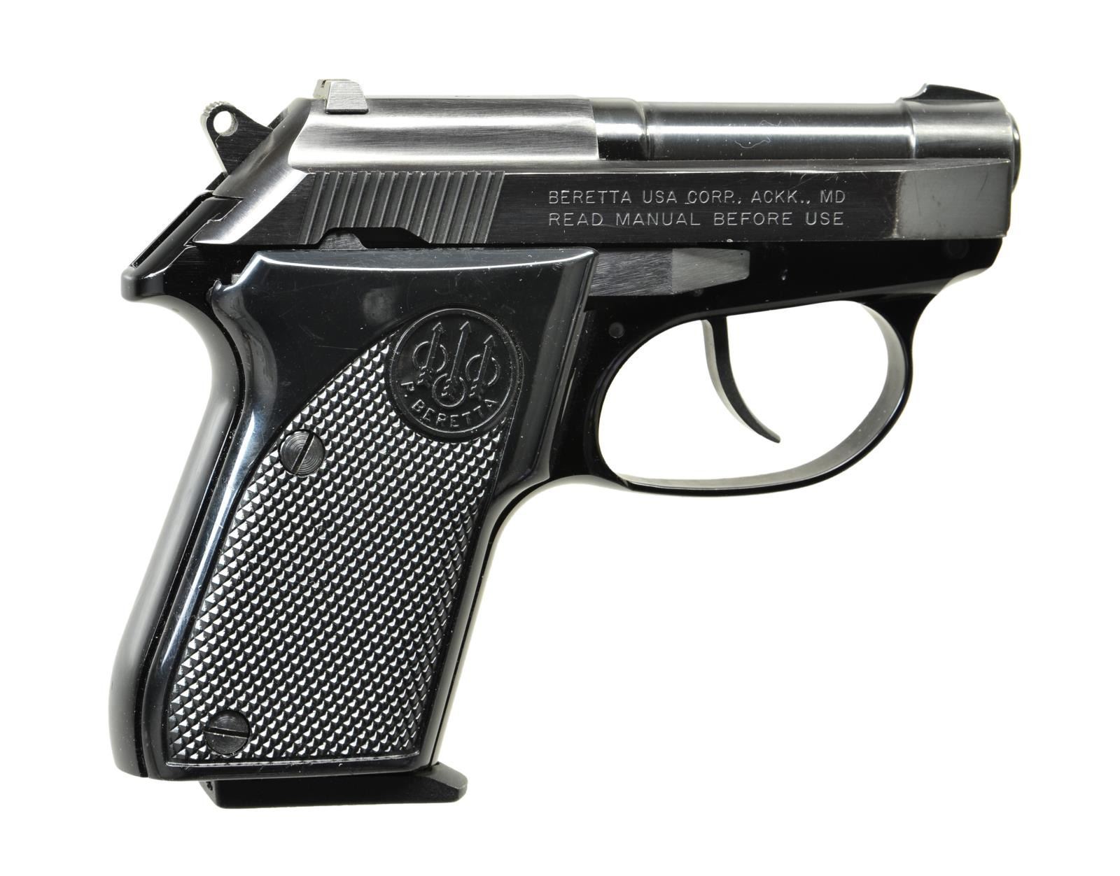 Cal. 32 ACP. S# DAA210437. Blue finish w/ 2 1/2" bbl., fixed sights, DA action & 2 piece black plastic Beretta logo grips. MAGS: 1 - 7 rd. UNATTACHED ACCESSORIES: owner's manual. CONDITION: very good to near excellent overall w/ very good bore. (22-1768/MD). MODERN. $300-400.