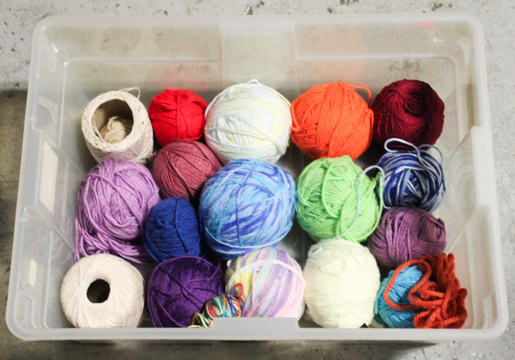 BIG NEETING LOT W. YARN AND WOOL BALLS.