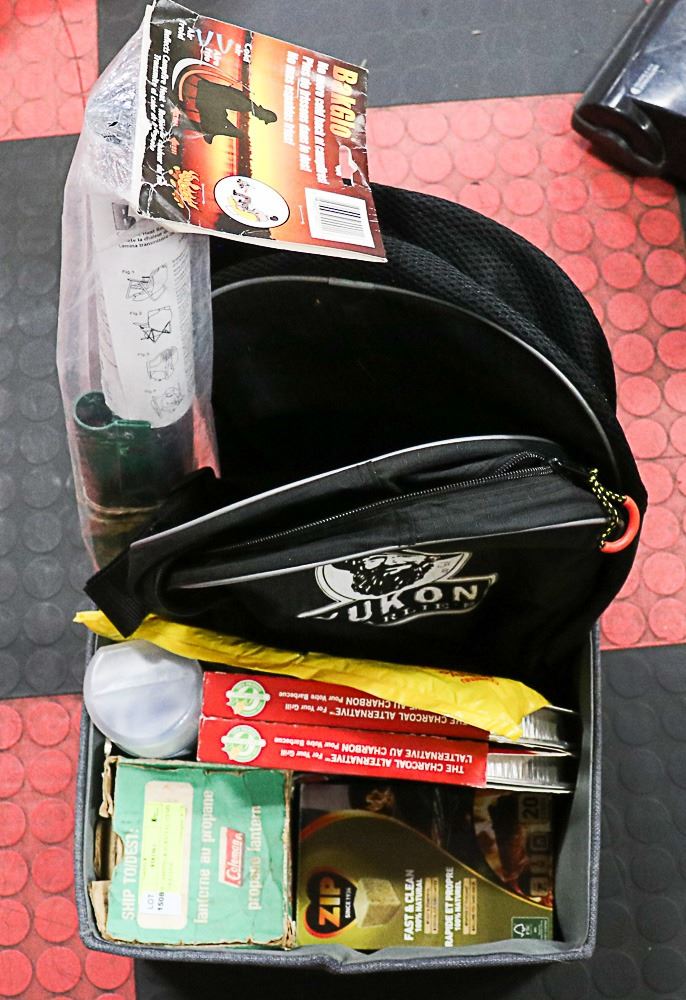 BIN OF CAMPING & SURVIVAL ITEMS ALL TOGETHER