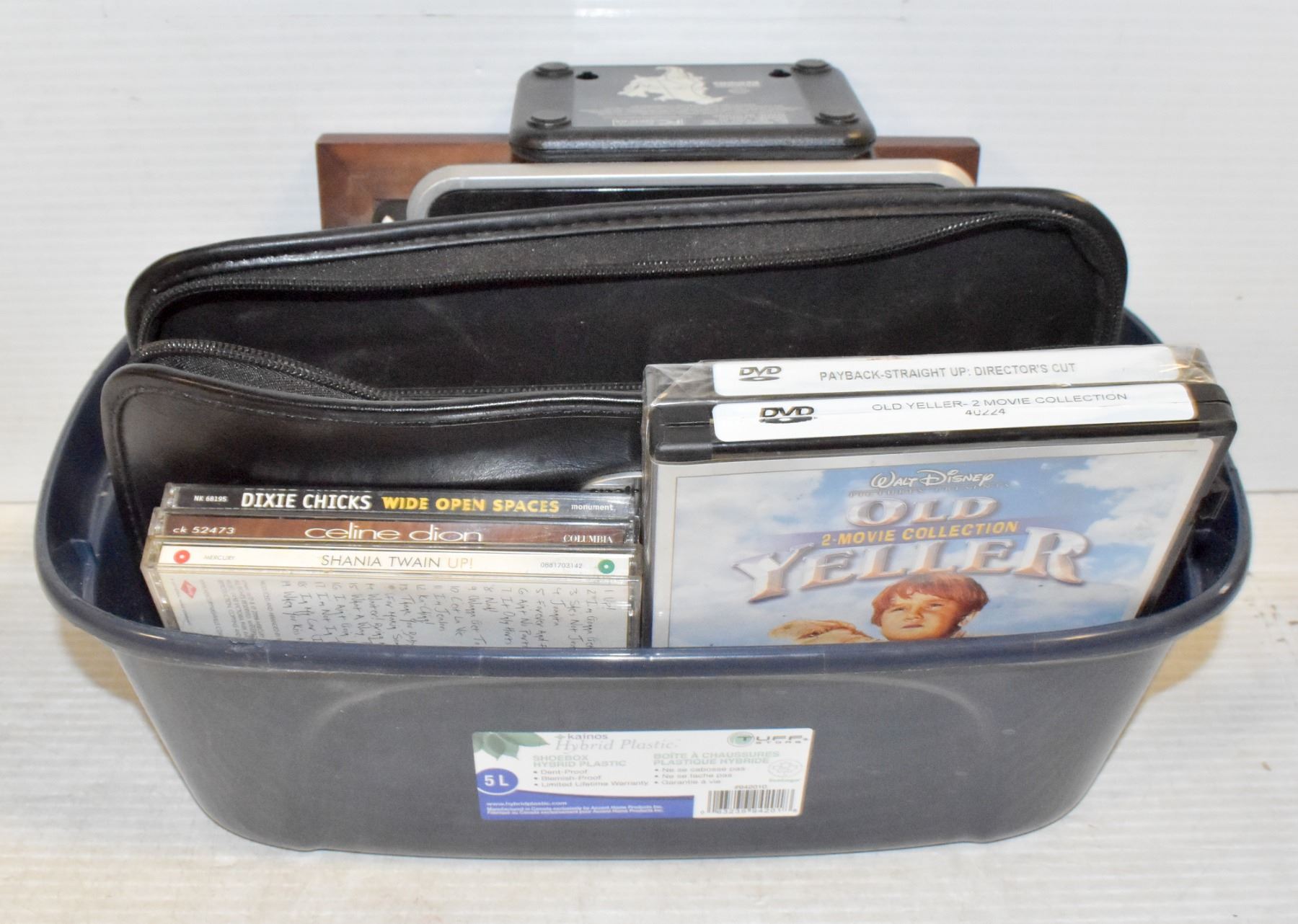 BIN OF DVD'S, DIGITAL PICTURE FRAME & MORE