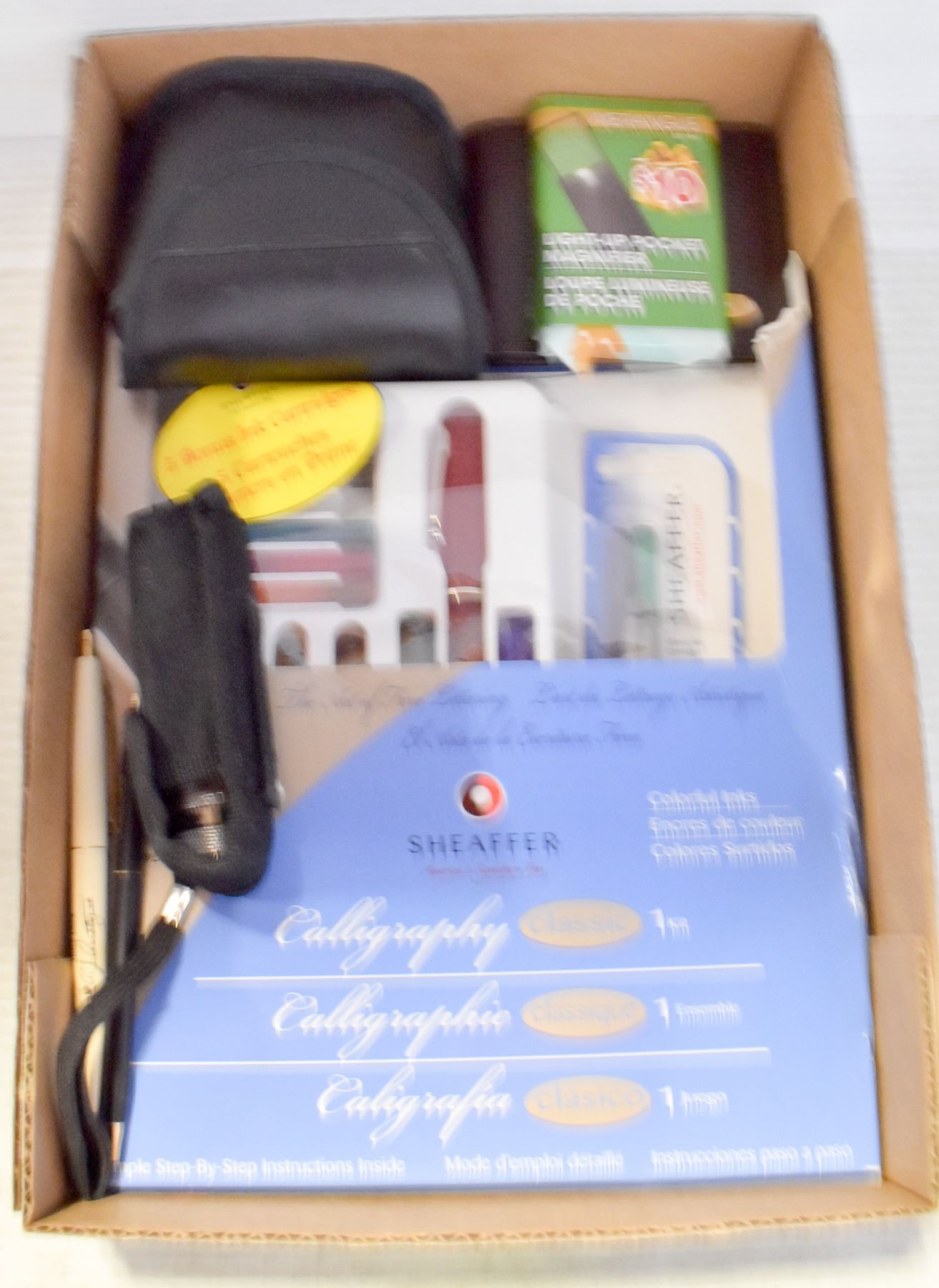 BINOCULARS, PENS, MAGNIFIER, WALLET, FLASHLIGHT &
