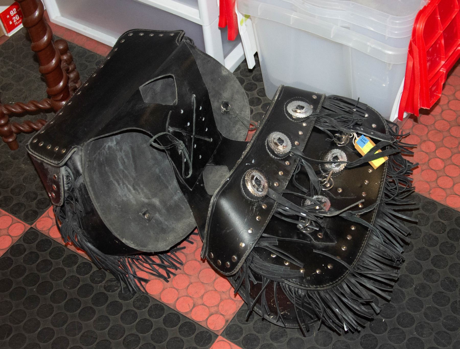 BLACK LEATHER PAIR OF SADDLE BAGS