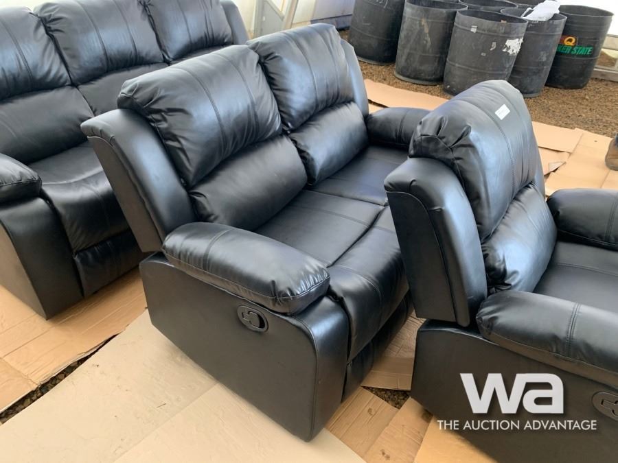 BLACK RECLINING SOFA, LOVE SEAT, & CHAIR