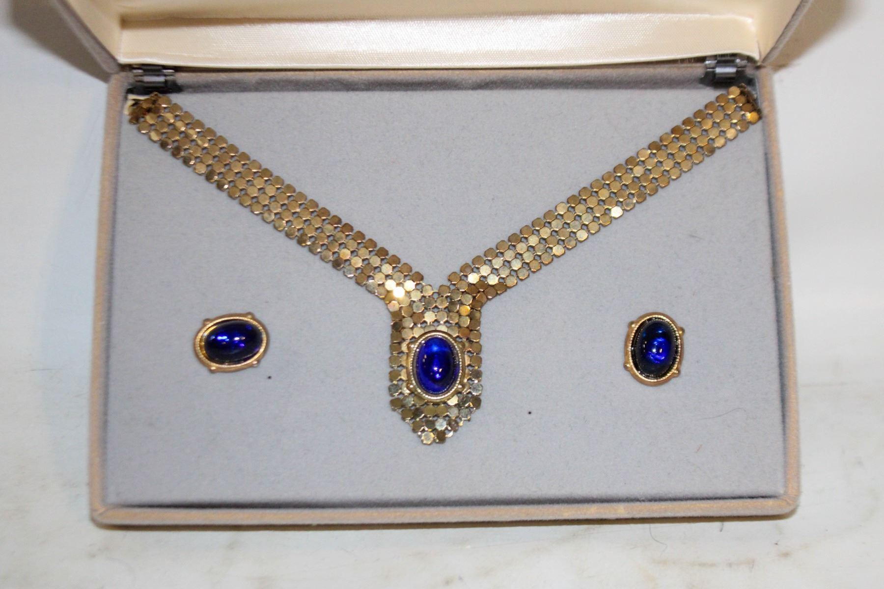 BLUE STONE NECKLACE & EARRING SET ESTATE