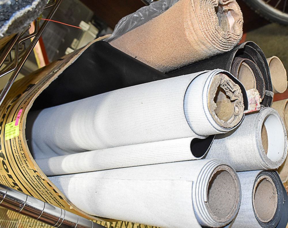 BOLTS/ROLLS OF MANY TYPES OF HEAVY FABRIC. NEW MATERIAL. VARIOUS LENGTHS. FABRIC WAS ORIGINALLY PURCHASED BY A CUSTOM PATIO UMBRELLA MANUFACTURER.