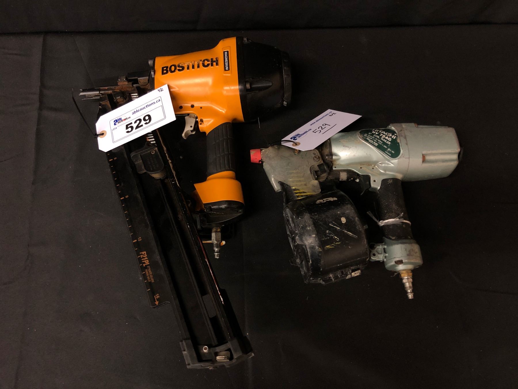 BOSTITCH MAGNESIUM ANGLED FRAMING NAILER & HITACHI 3 INCH COIL NAIL GUN