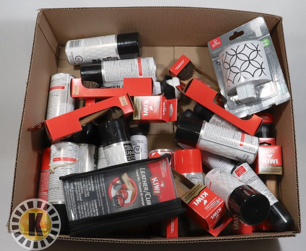 BOX OF ASSORTED SHOE SHINE PRODUCTS