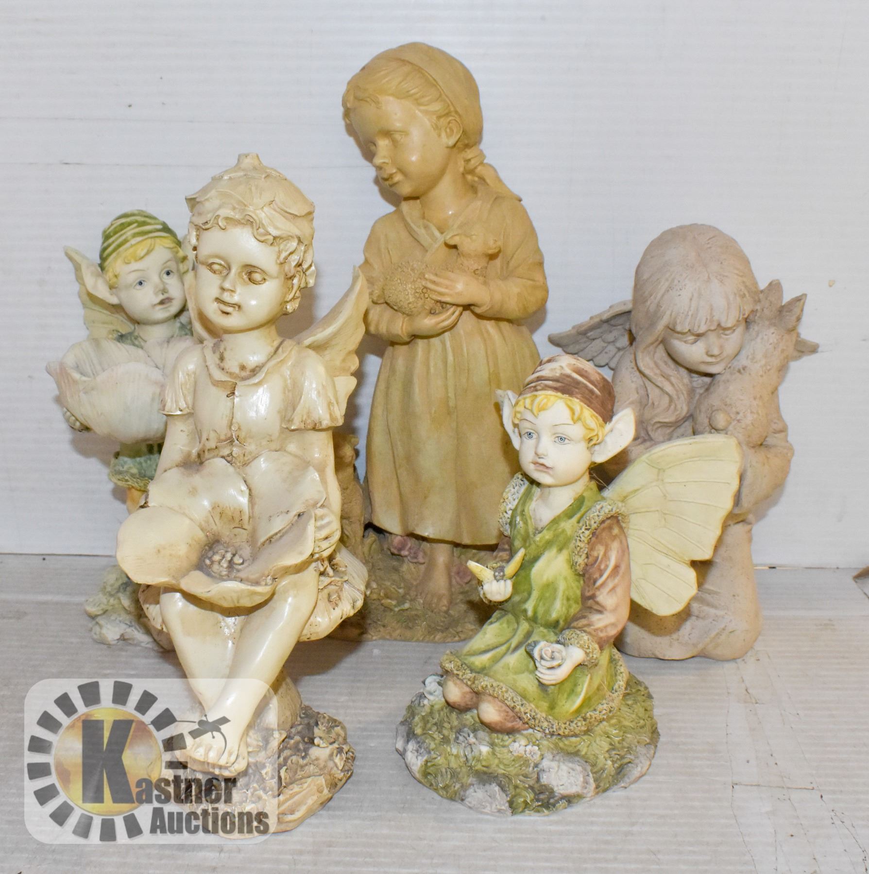 BOX OF GARDEN FIGURES 5 DIFFERENT ITEMS