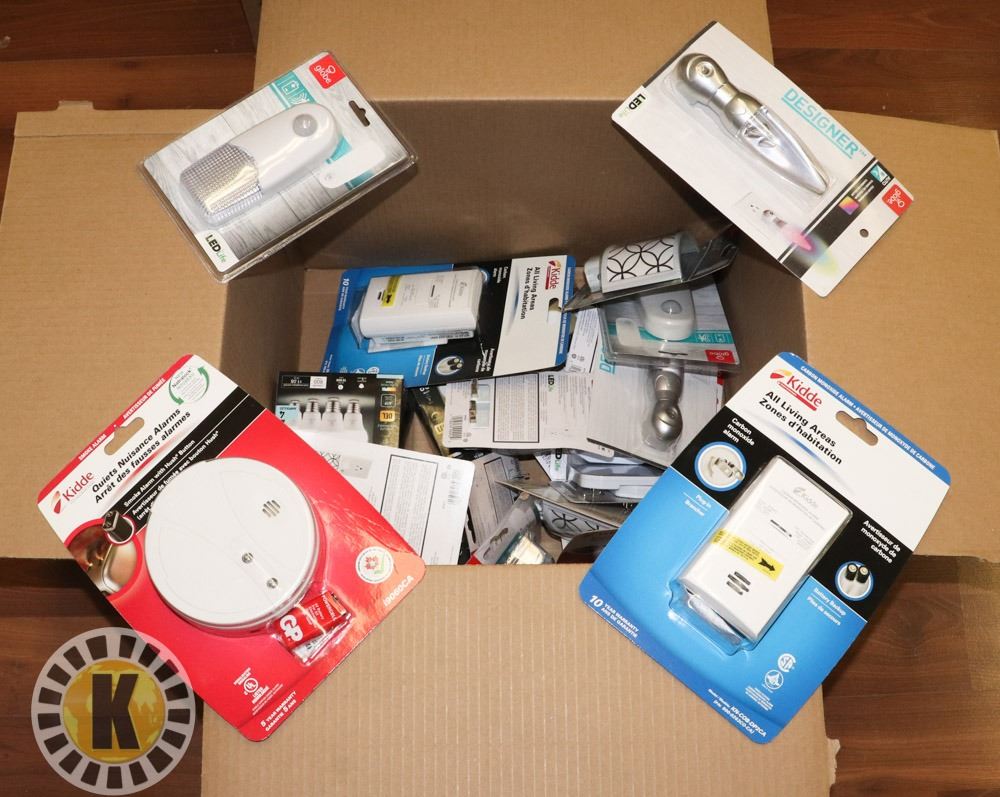 BOX OF NIGHT LIGHTS, SMOKE DETECTORS & BULBS