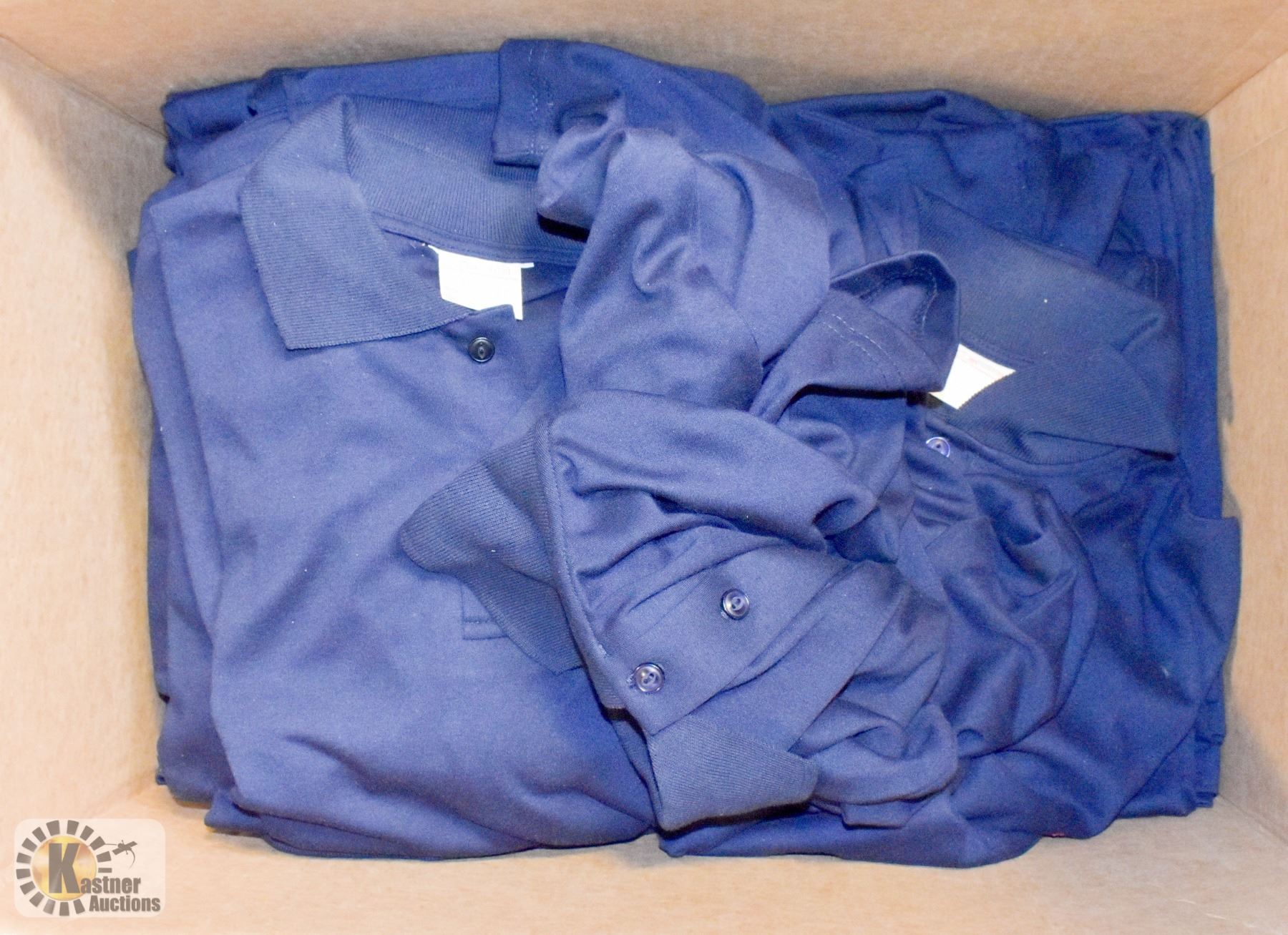 BOX OF UNKNOWN SIZES NAVY BLUE POLO SHIRTS