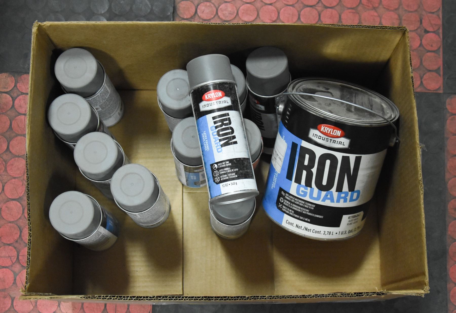 BOX OF VARIOUS IRON GUARD LATEX ENAMEL