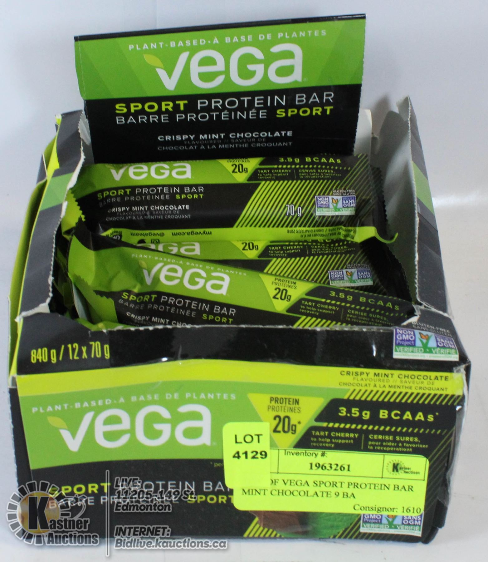 BOX OF VEGA SPORT PROTEIN BAR MINT CHOCOLATE 9 BA