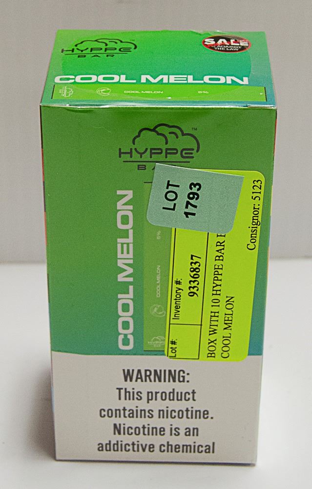 BOX WITH 10 HYPPE BAR E-CIGS 5% COOL MELON