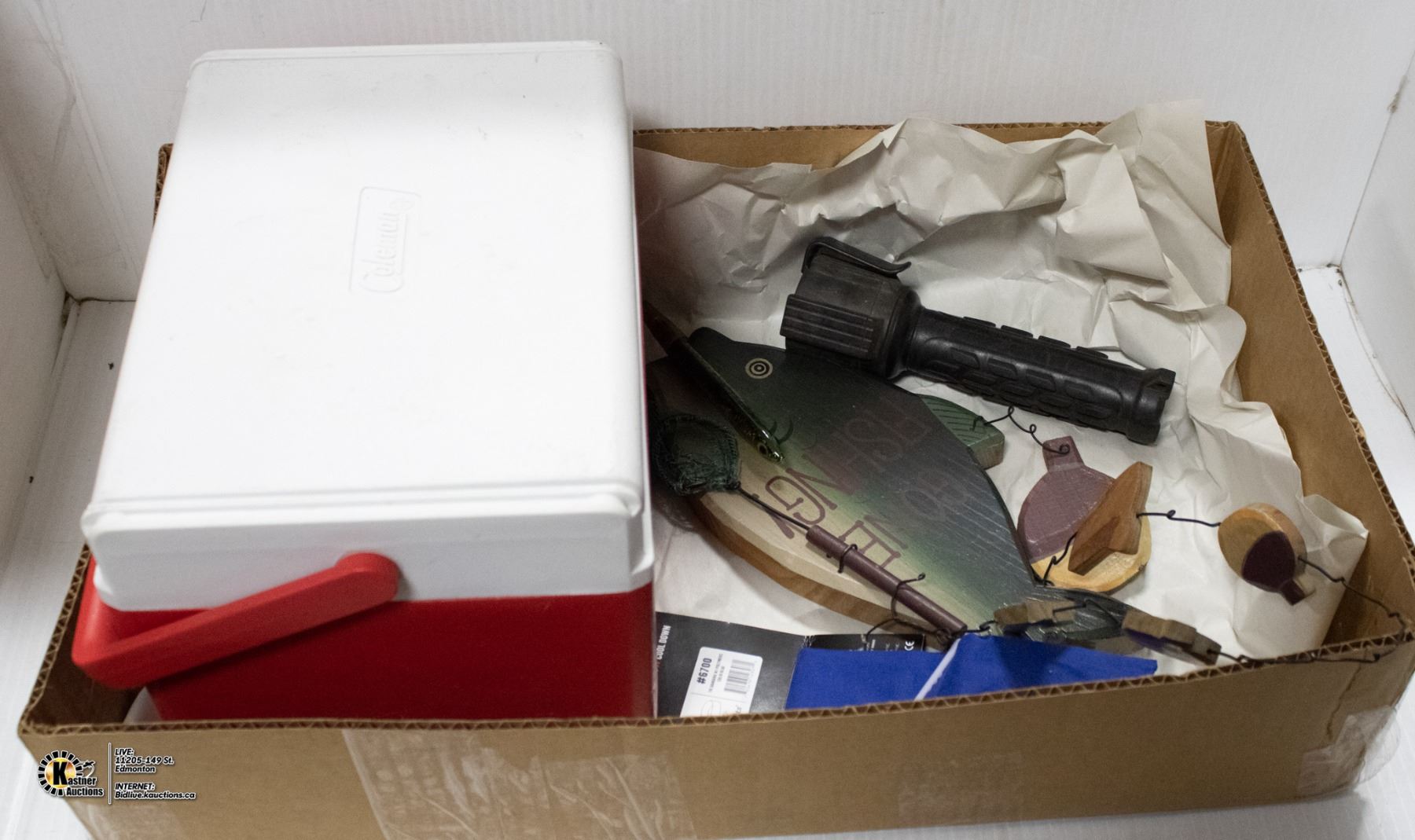"GONE FISHING" WALL HANG DECOR, NEW "CHILL ITS" EVAPORATION HEADBAND, ALL WEATHER FLASHLIGHT, ETC.