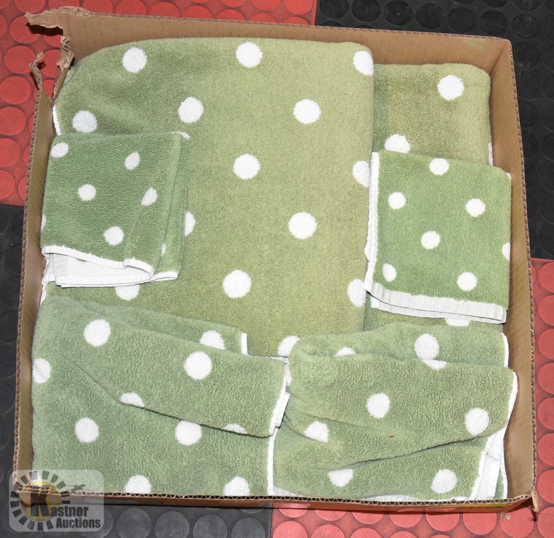 WHITE POLKA DOTS & REVERSE WHITE WITH GREEN POLKA DOTS TOWEL SET - 2 PLUSH BATH TOWELS, 2 HAND TOWELS