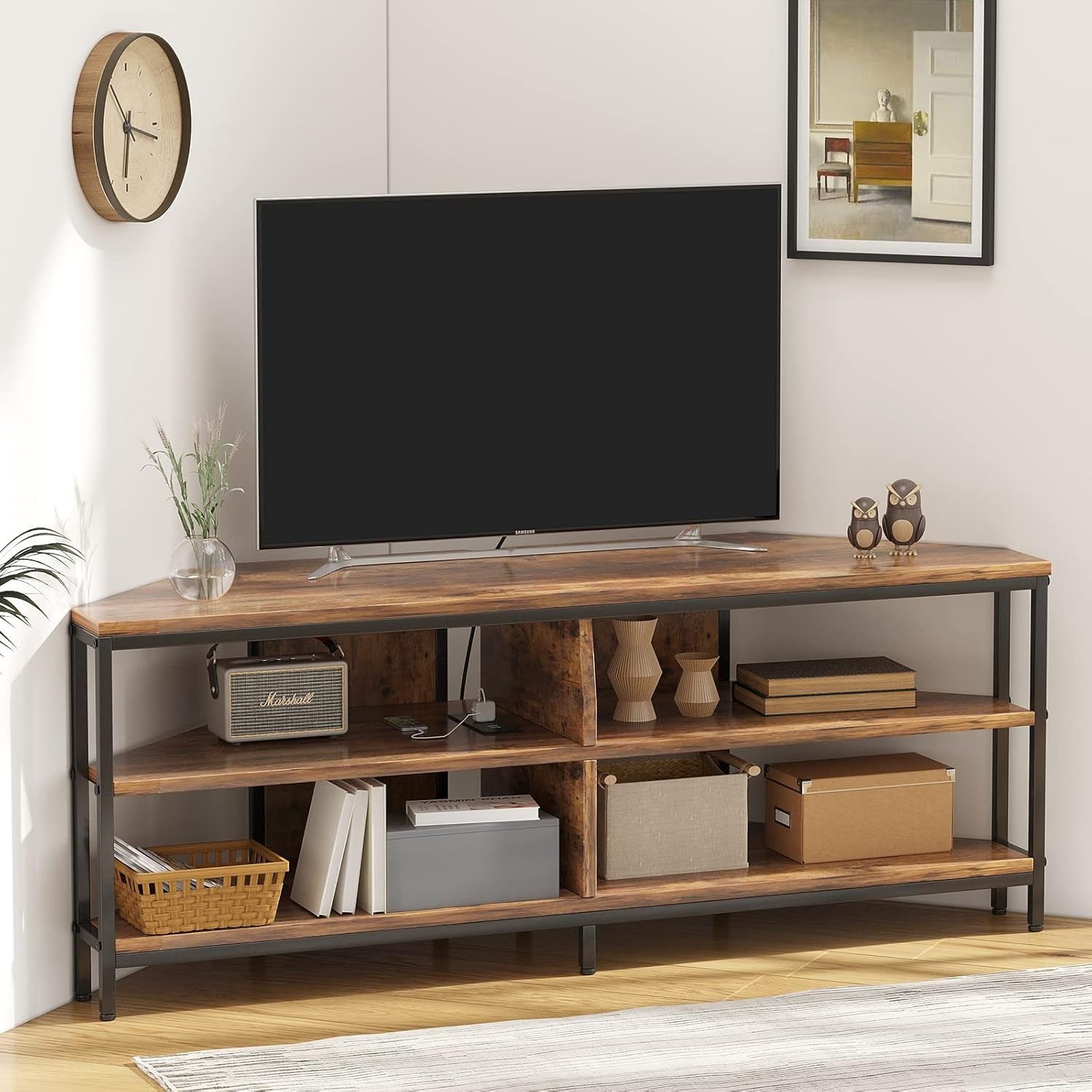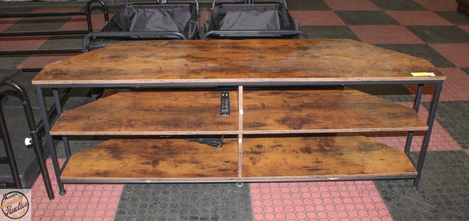 OUTLET, 3 LEVEL, BLACK STURDY METAL FRAME, RUSTIC BROWN WOOD, ENTERTAINMENT STAND, AMZ SES **ALL ITEMS MUST BE REMOVED BY 5PM SATURDAY, AUGUST 30TH 2025. ALL REMAINING ITEMS WILL BE SUBJECT TO A $6.00 PER DAY STORAGE CHARGE. ANY ITEMS REMAINING AFTER MONDAY, SEPTEMBER 15TH 2025 WILL BE CONSIDERED FORFEITED. NO REFUNDS WILL BE ISSUED FOR FORFEITED ITEMS. TO SCHEDULE A PICK UP APPOINTMENT CLICK HERE