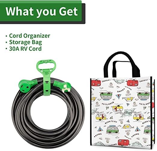 30 AMP, 50 FEET, STW 10AWG 3 WIRE WITH LED POWER INDICATOR, GREEN, ETL LISTED, AMZ SES
