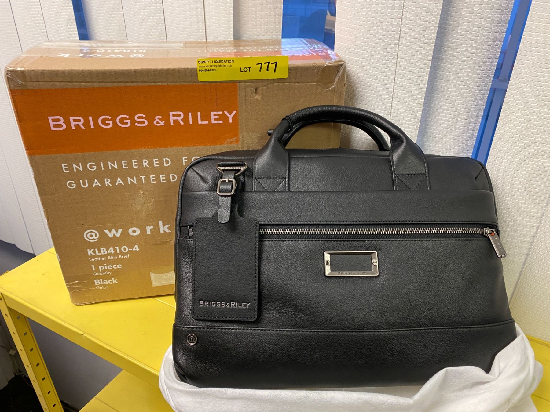 BRIGGS & RILEY - Black Leather Slim Briefcase - KB410-4