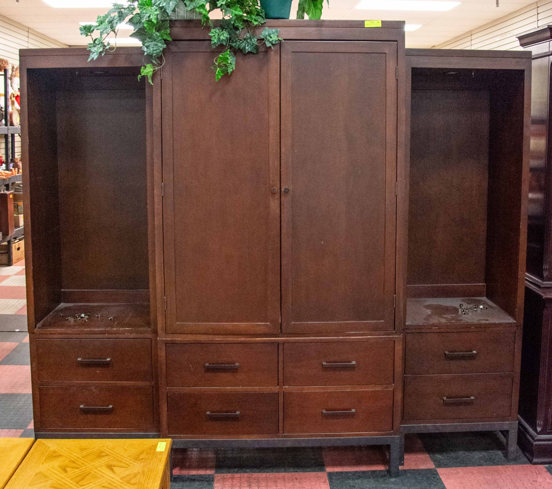BROWN WOODEN TV HUTCH APPROX H - 76"