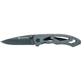 Smith & Wesson Frame Lock Folding Knife, Grey 7Cr17MoV High Carbon Stainless Steel Drop Point Blade with Ambidextrous Thumb Knobs, Grey Stainless Steel Skeleton Handle with Spine Jimping and Pocket Clip