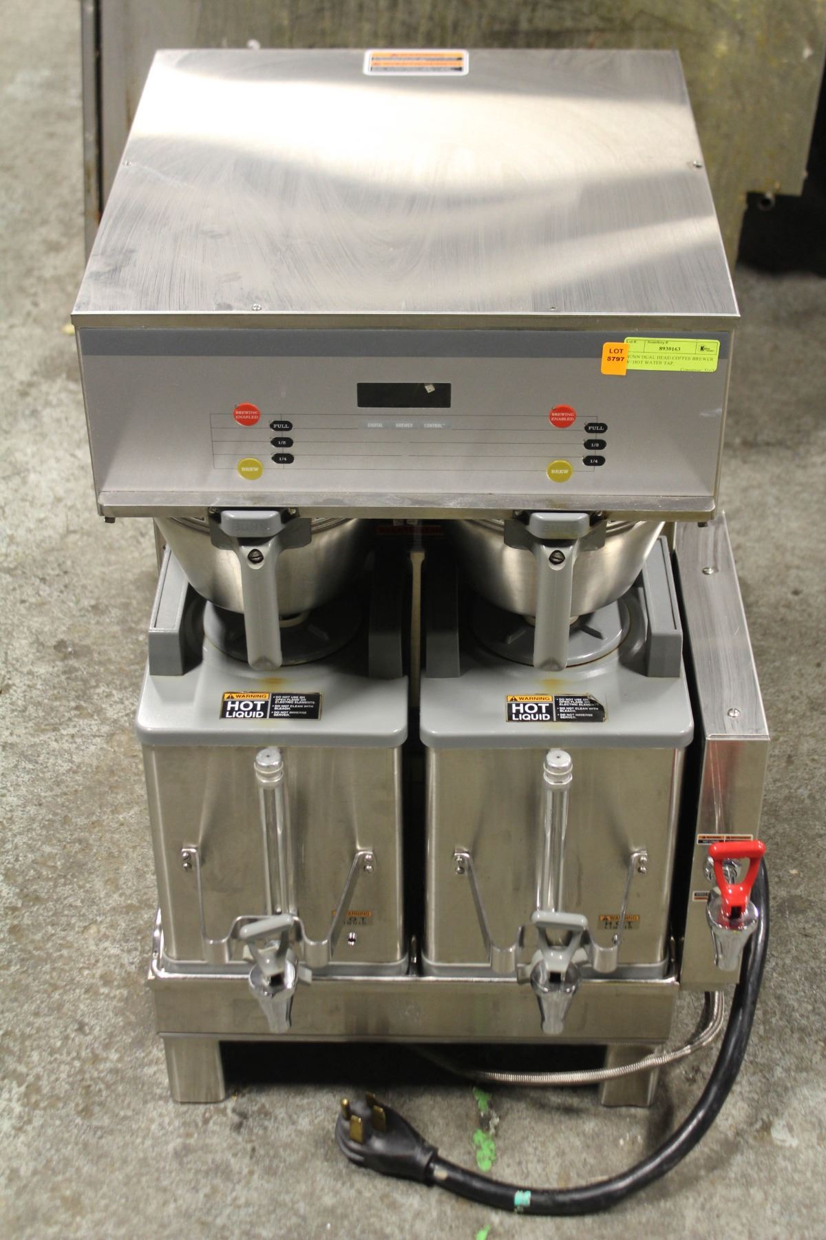 FILTERS, & TWO INSULATED & HEATED CARAFE'S., SINGLE PHASE, 120/208V, 40.1A, 8200W.