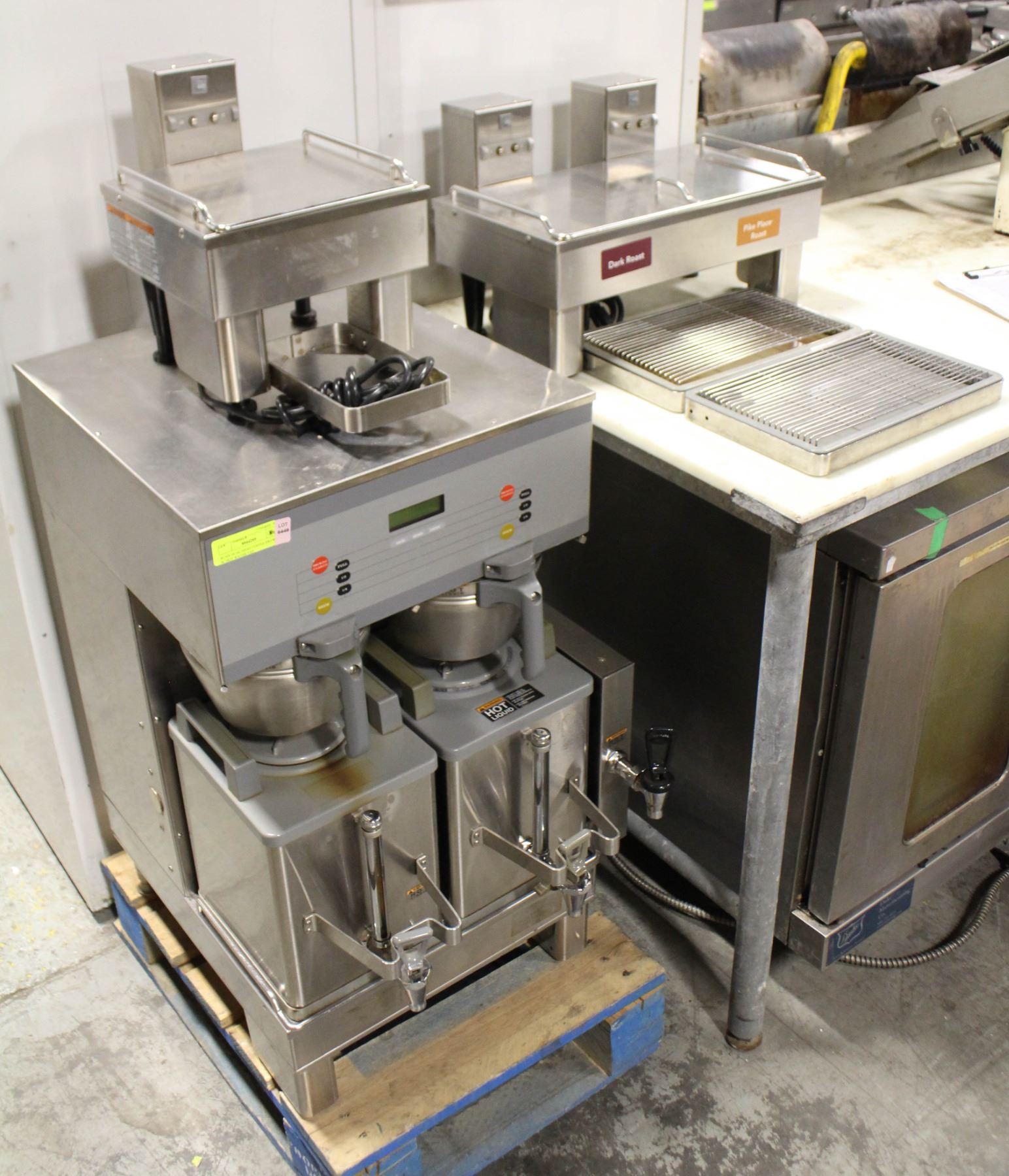 S/S FILTER BASKETS, & ONE INSULATED & HEATED CARAFE (NO LID)SINGLE PHASE, 120/208V, 40.1A, 8200W. COMES W/ TWO BUNN ELECTRIC CARAFE THERMALIZER STANDS. M# 1SH, 120V, 1A, 90W