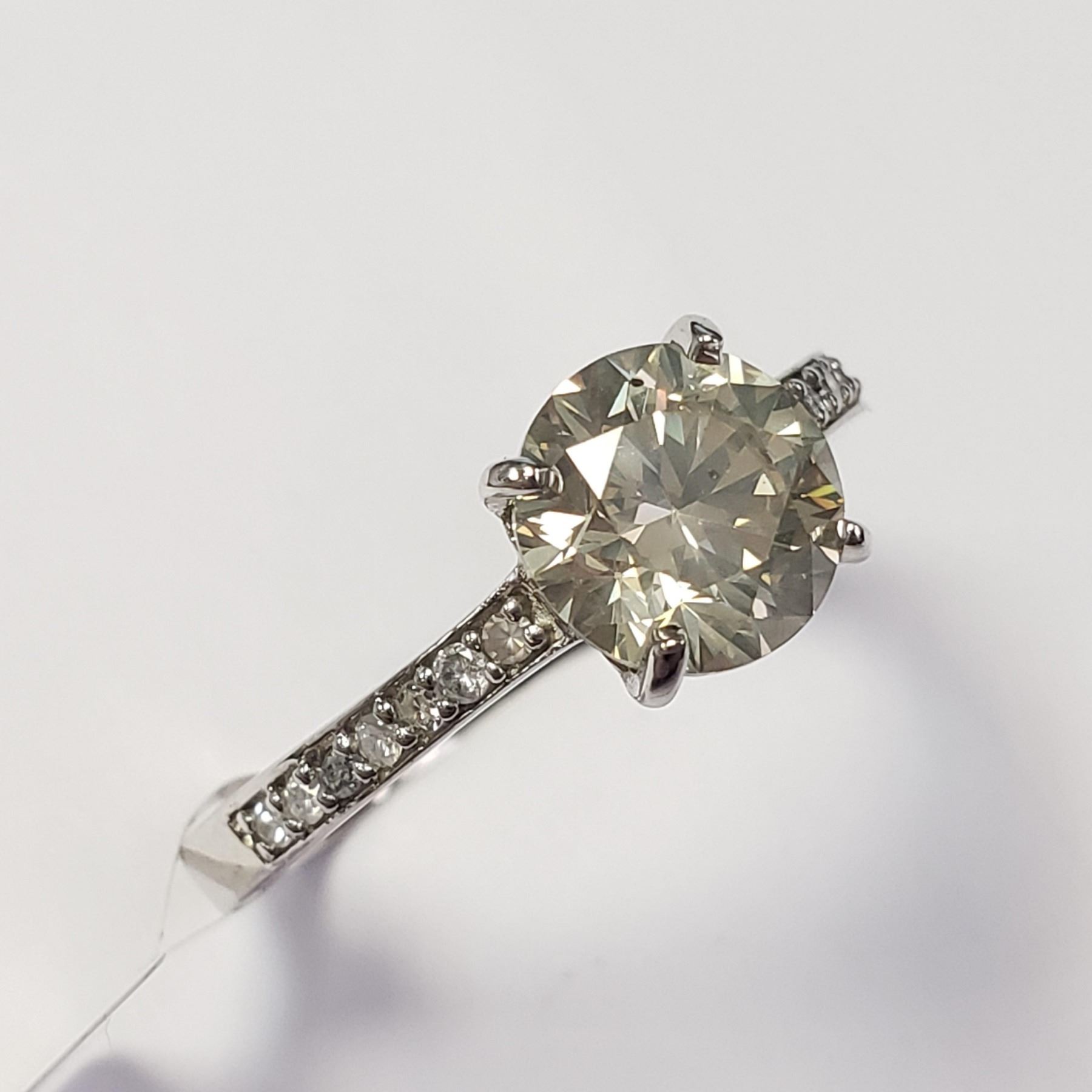 14K WHITE GOLD DIAMOND (1.4CT,I1,FANCY GREENISH YELLOW) DIAMOND(0.06CT) RING SIZE 6.25 (RING IS RESIZABLE FOR $40) (~WEIGHT 2.18G), MADE IN CANADA, APPRAISED RETAIL $8170 COMES WITH CERTIFICATE OF AUTHENTICITY
