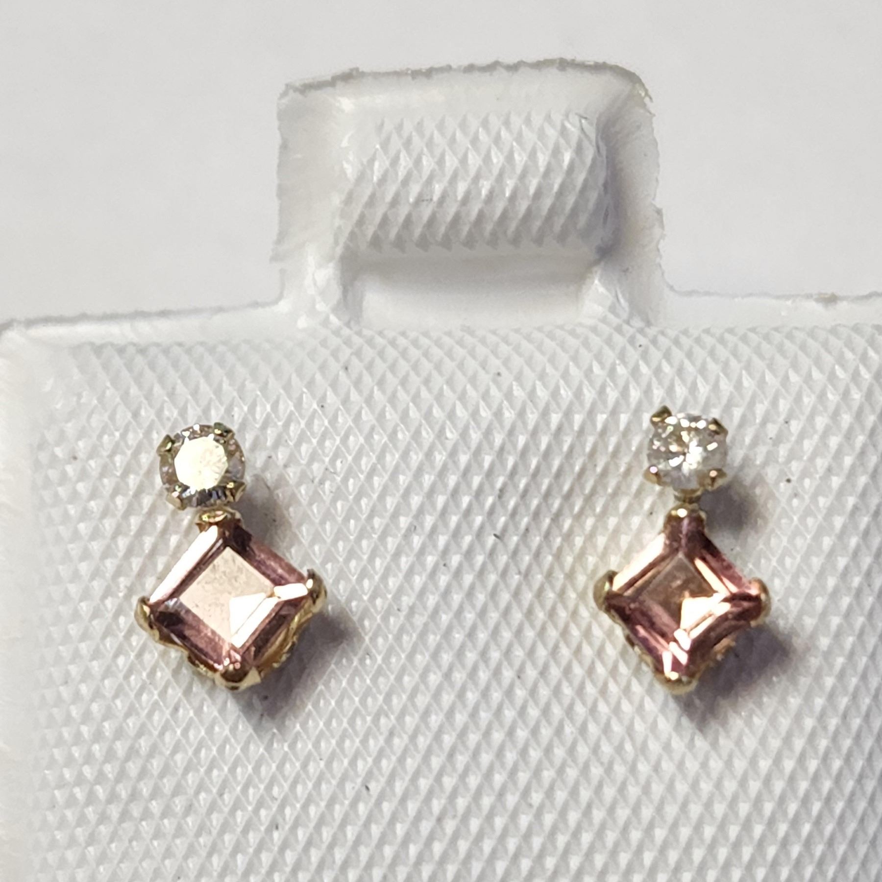 EARRINGS. 10K YELLOW GOLD TOURMALINE (0.44CT) DIAMOND (0.06CT) EARRINGS. MADE IN CANADA