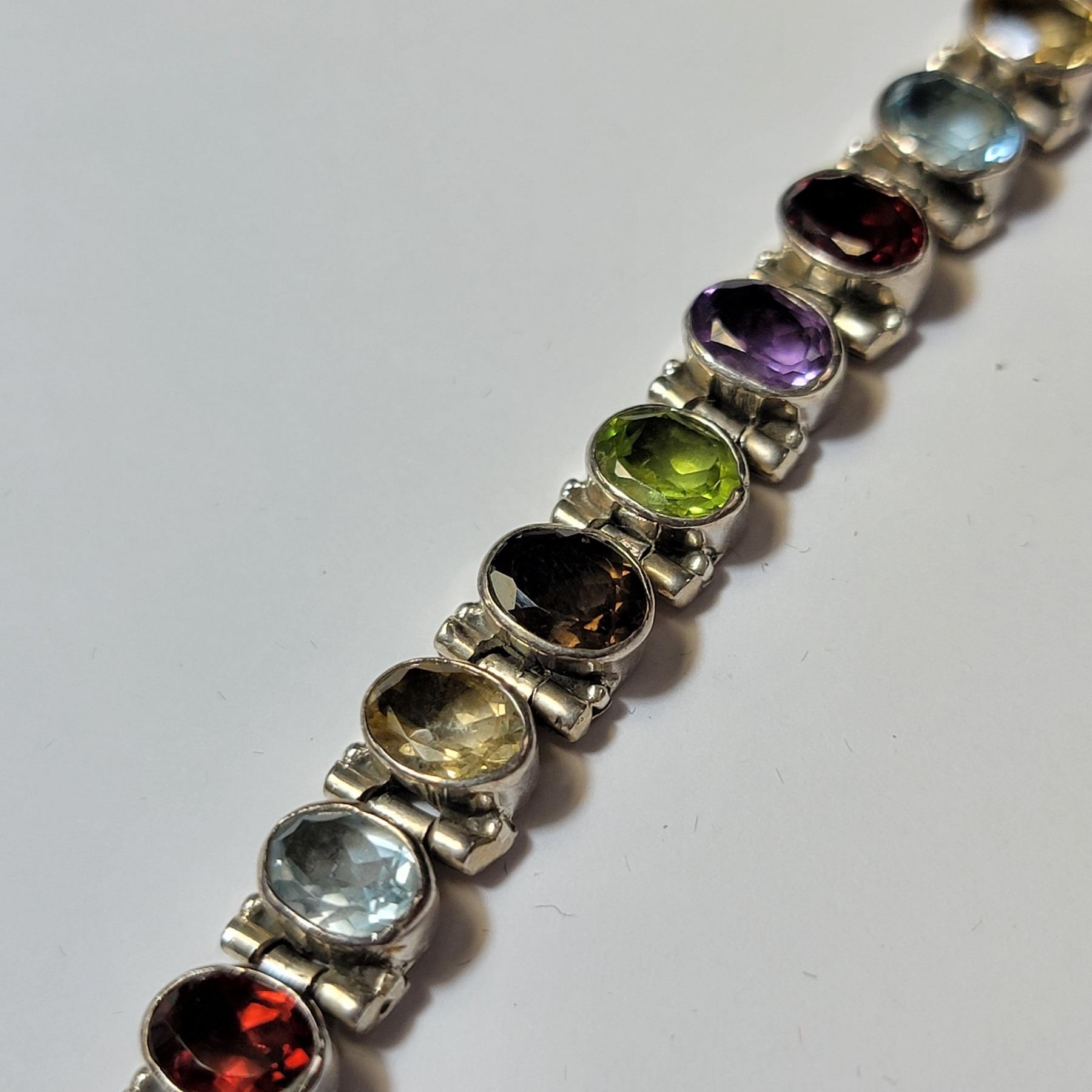 SILVER MULTI GENUINE GEMSTONE 7.5" BRACELET, SUGGESTED RETAIL VALUE $500