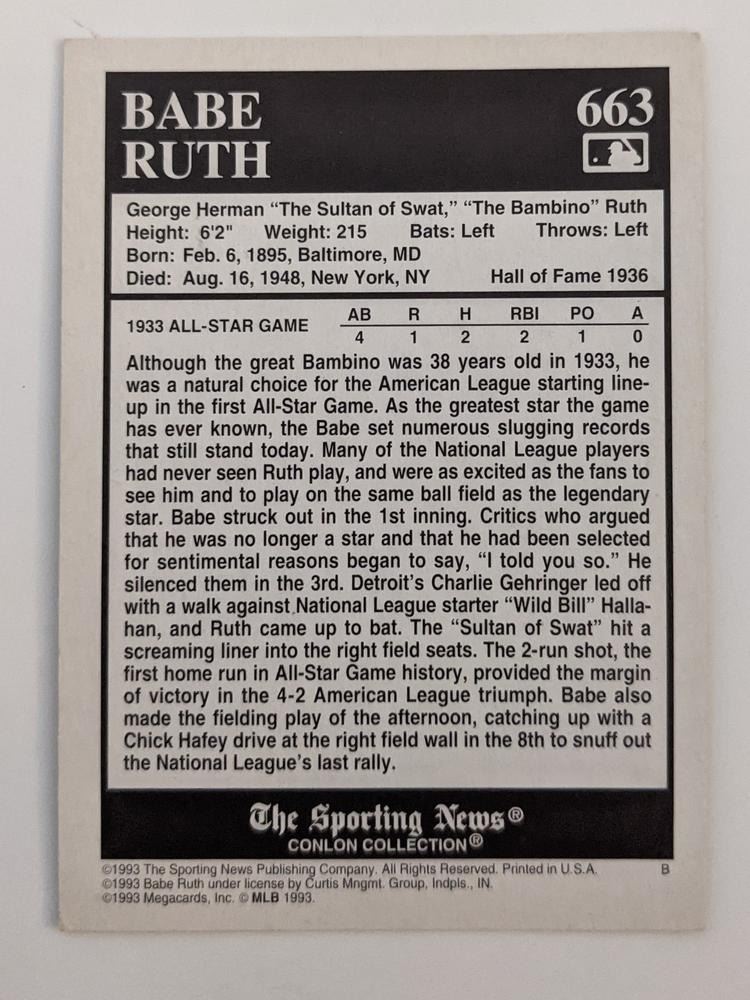 Babe Ruth Game of the Century Baseball Card - The Sporting News #663