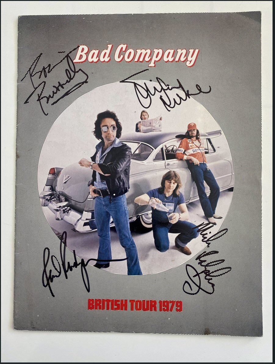 Bad Company signed tour book. Autographed by Simon Kirke, Paul Rodgers, Boz Burrell, Mick Ralphs. 10 x 12 inches.