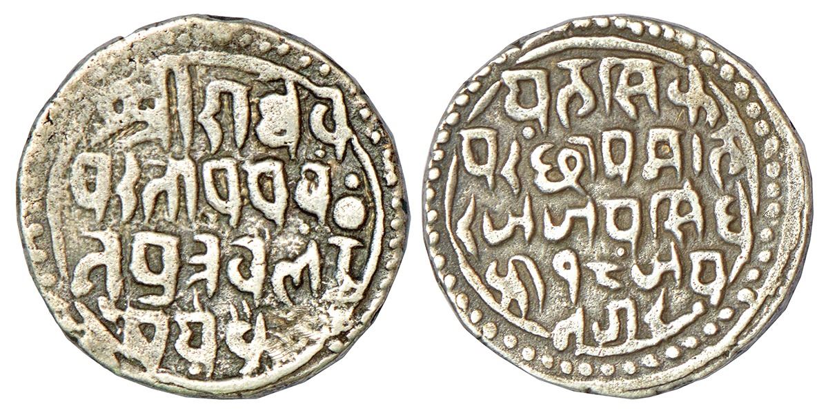 Bajranggarh, Jai Singh (1797-1818 AD), silver rupee, Jainagar mint, ND/RY 18, Devanagari legend, with dotted border on both sides, KM 7, 8.28g.