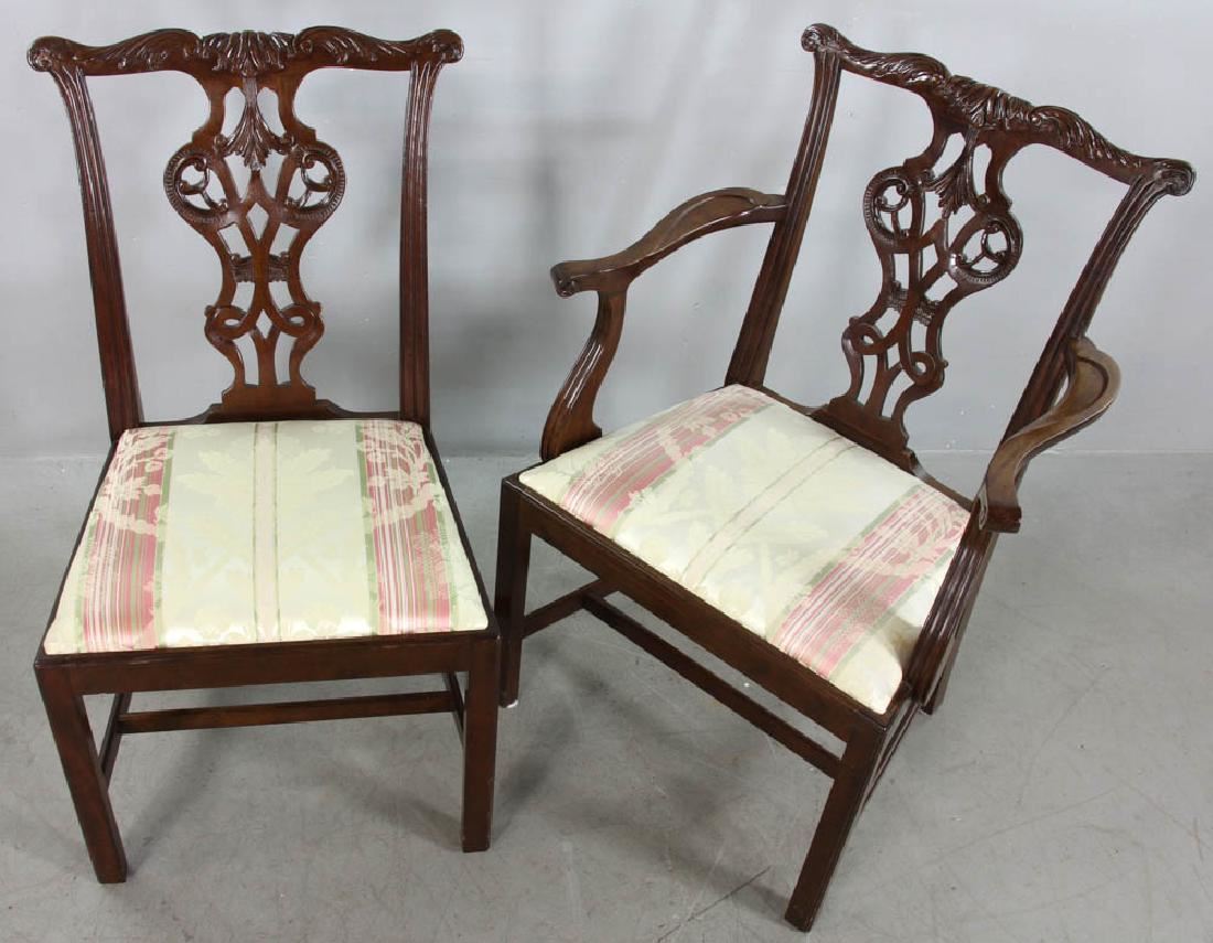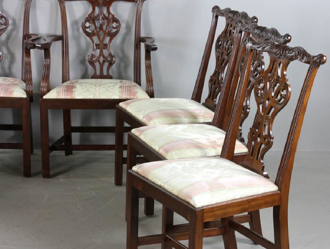 Set of eight Baker Furniture 'Historic Charleston' Chippendale mahogany chairs, including two armchairs and six side chairs, 37" H x 23" W x 17" D. Provenance: Wakefield, Massachusetts estate.