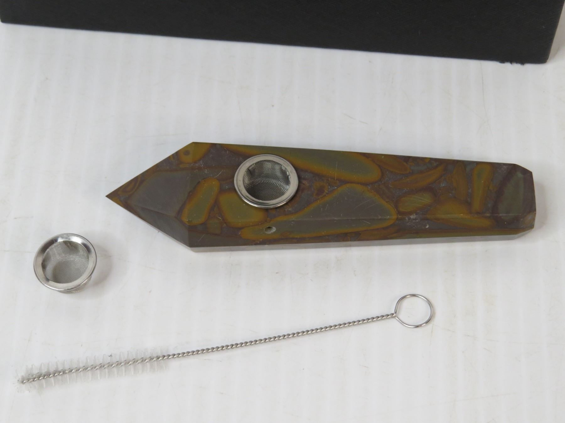 Bamboo Leaf Stone Pipe w/Extra Screen & Cleaner (unused)