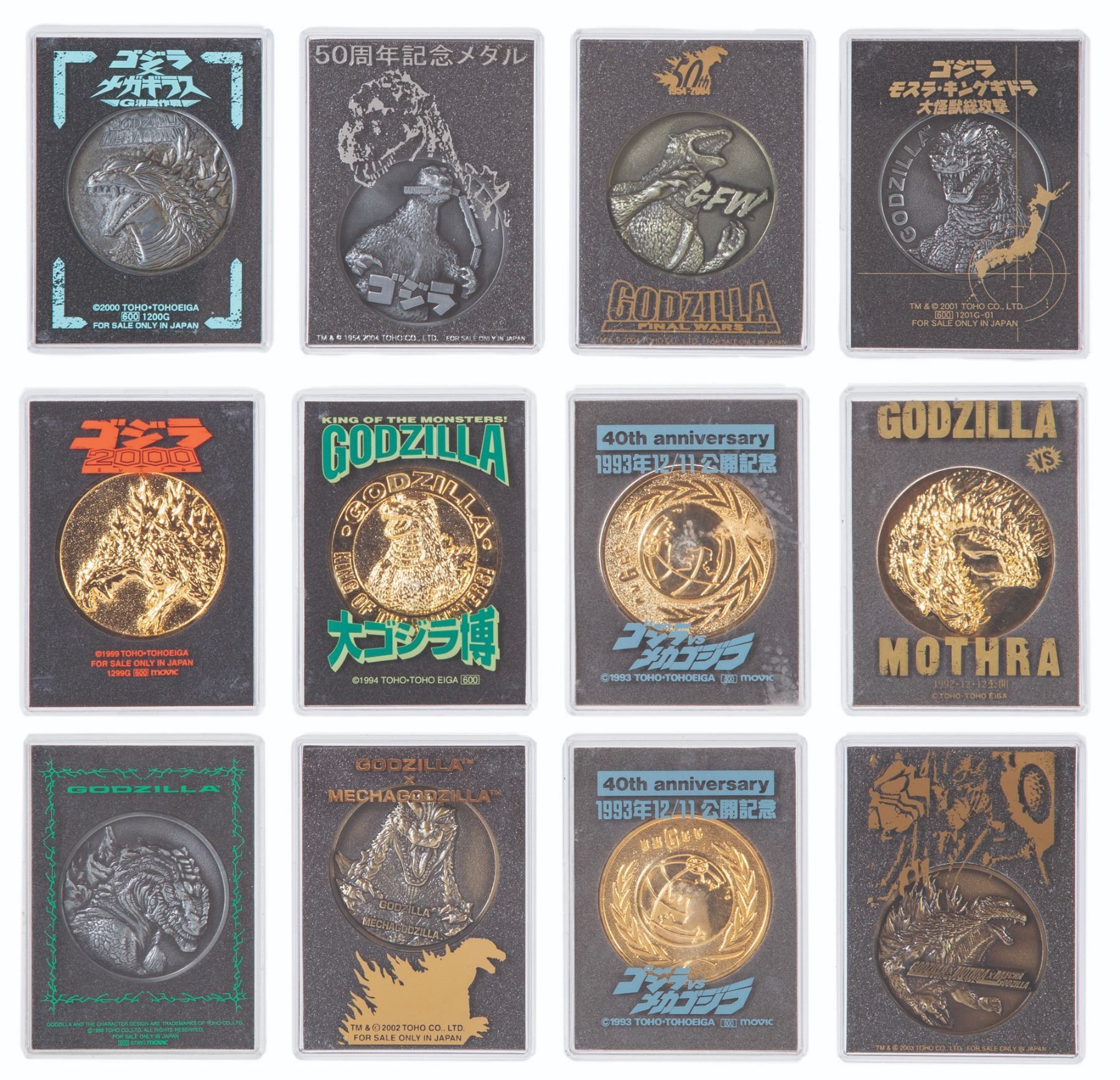1992-2003. Bandai Theatre Exclusive Coin lot of 12. 2” diameter. VG+ 40th Anniversary box has scuffing.