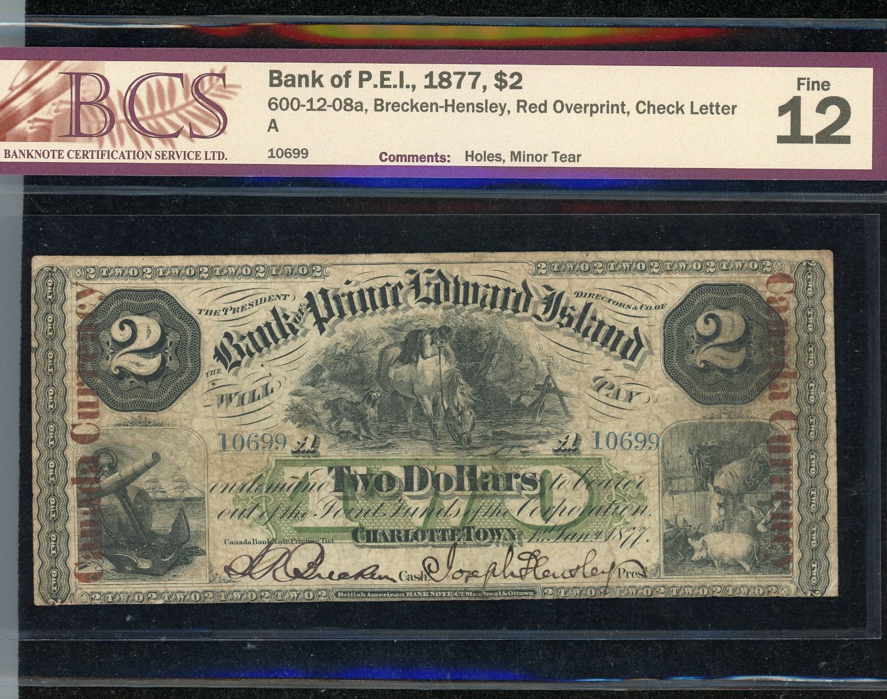 Ch.600-12-08a, Brecken-Hensley, Red Overprint; BCS Fine-12, Holes, Minor Tear. S/N: 10699