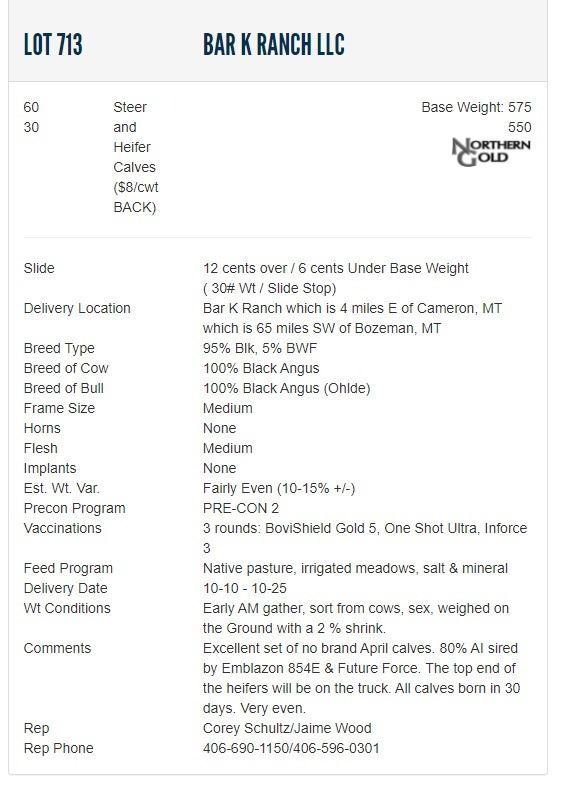 Bar K Ranch LLC - 60/30 Steers/Heifers; Base Weight: 575/550