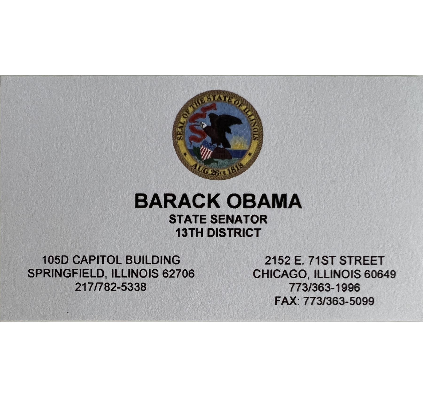 Barack Obama State Senator business card. RR Auction certificate. 2x3 inches