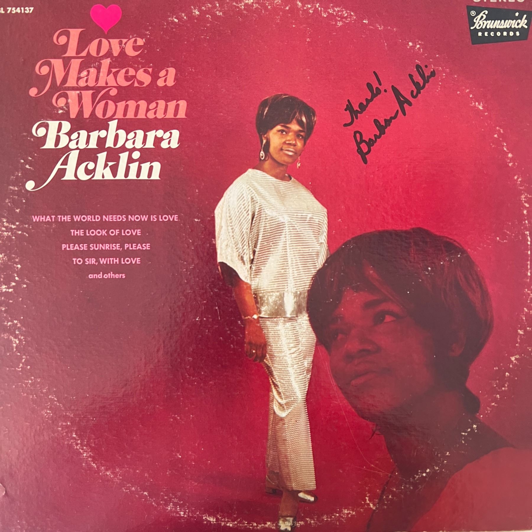 Barbara Acklin signed Love Makes a woman album. 12x12 inches vinyl included