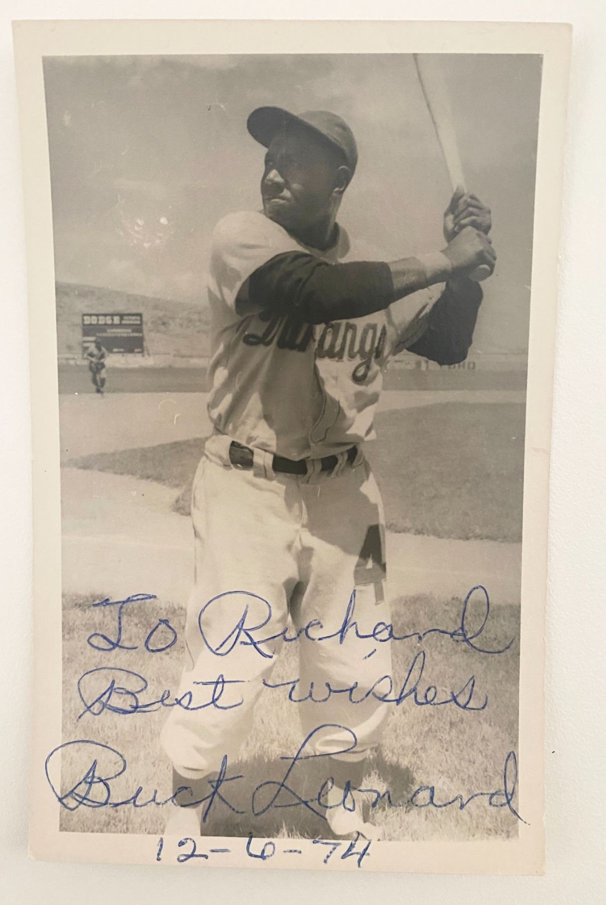 Baseball Player Buck Leonard signed photo postcard. 3x5inches