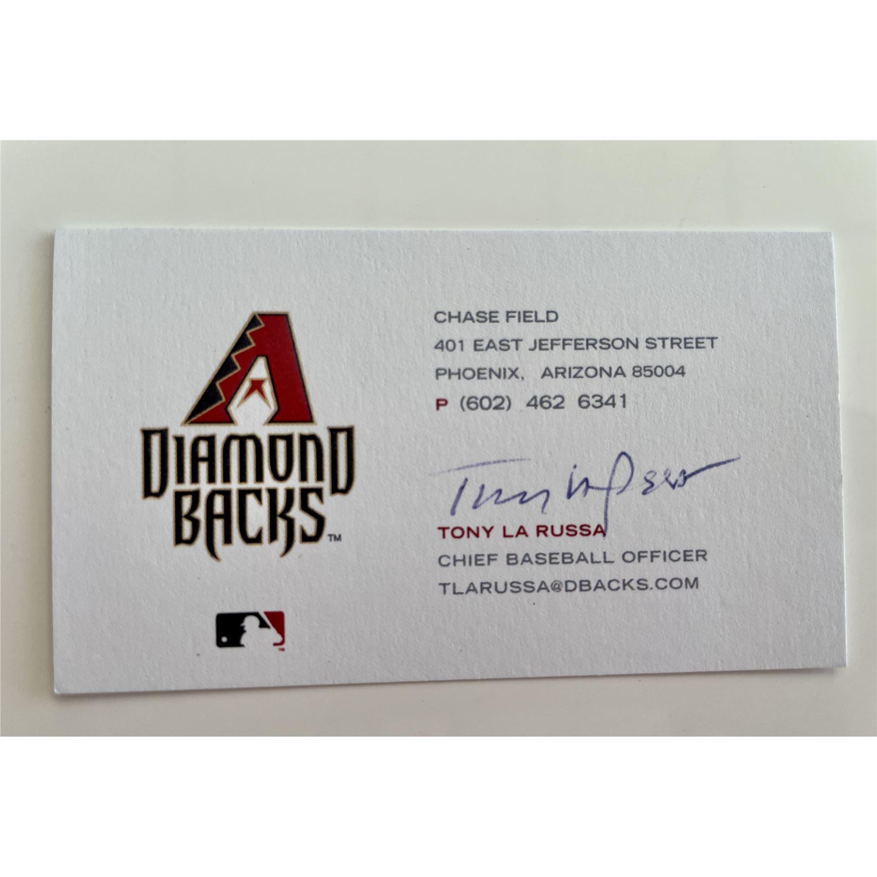 Baseball coach Tony La Russa signed business card. 2x3 inches