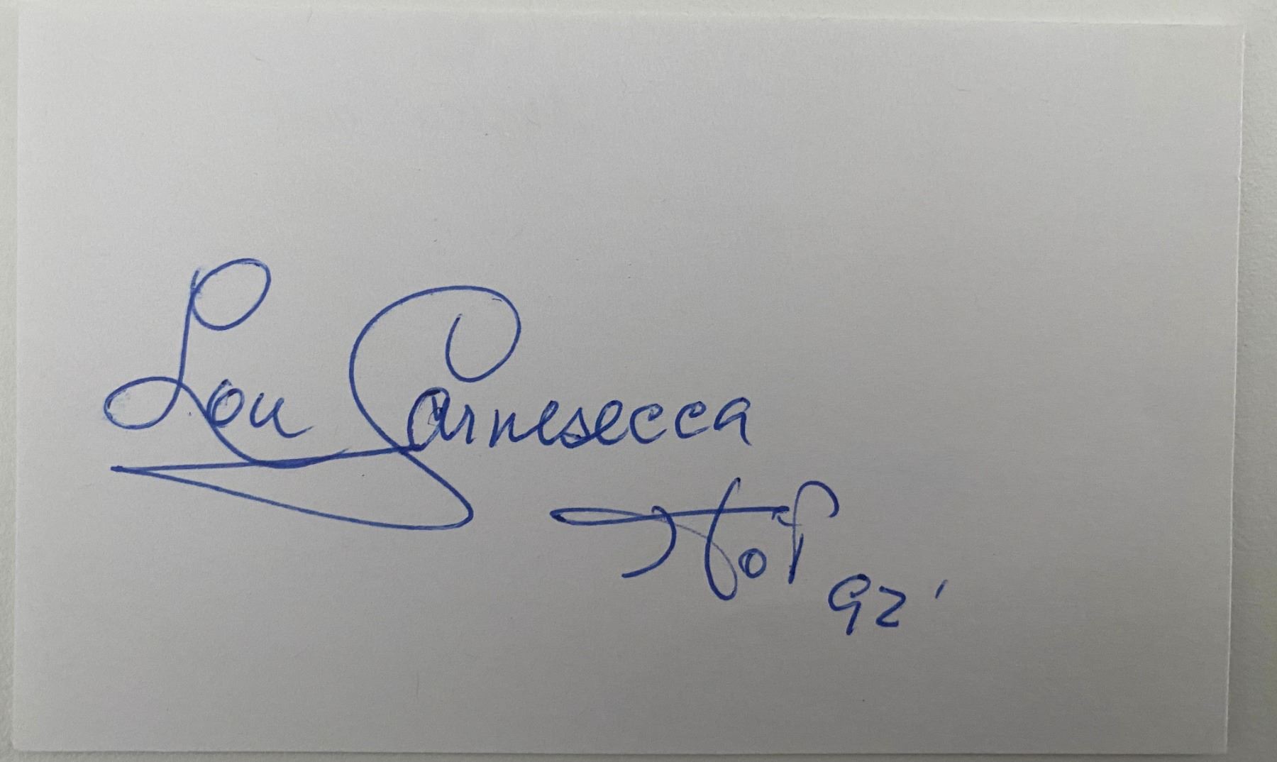 Basketball HOF Lou Carnesecca signature. 3x5inches