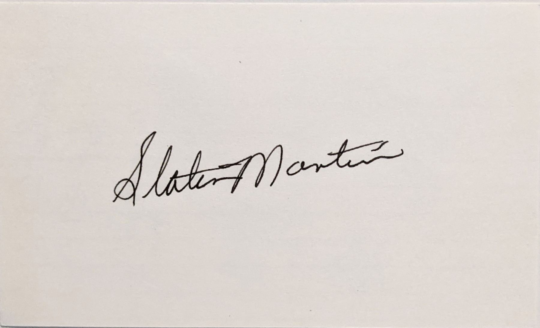 Basketball HOF Slater Martin autograph. 3 x 5 inches.