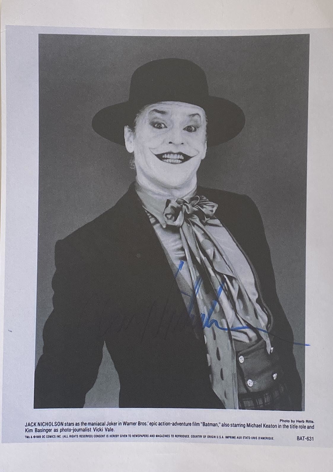 Batman signed movie photo autographed by Jack Nicholson. 8x12 inches