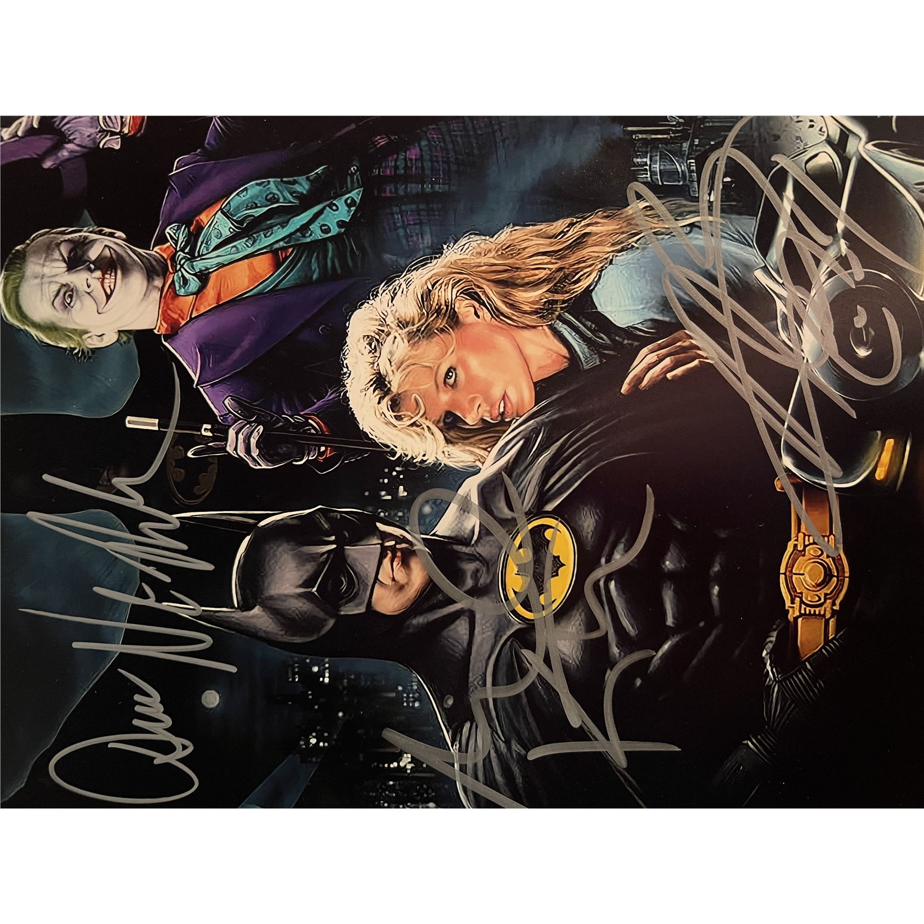Batman cast signed photo autographed by Michael Keaton, Kim Basinger and Jack Nicholson. 8x10 inches